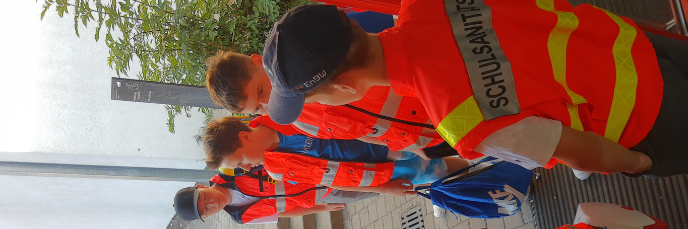 Unfälle passieren überall, auch in der Schule. Daher ist es wichtig, dass es Schülerinnen und Schüler gibt, die sich im Schulsanitätsdienst engagieren und sich um leichtere oder z.T. auch schwerere Verletzungen/Erkrankungen kümmern.
