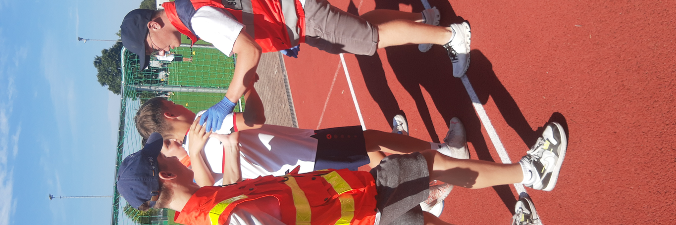 Unfälle passieren überall, auch in der Schule. Daher ist es wichtig, dass es Schülerinnen und Schüler gibt, die sich im Schulsanitätsdienst engagieren und sich um leichtere oder z.T. auch schwerere Verletzungen/Erkrankungen kümmern.